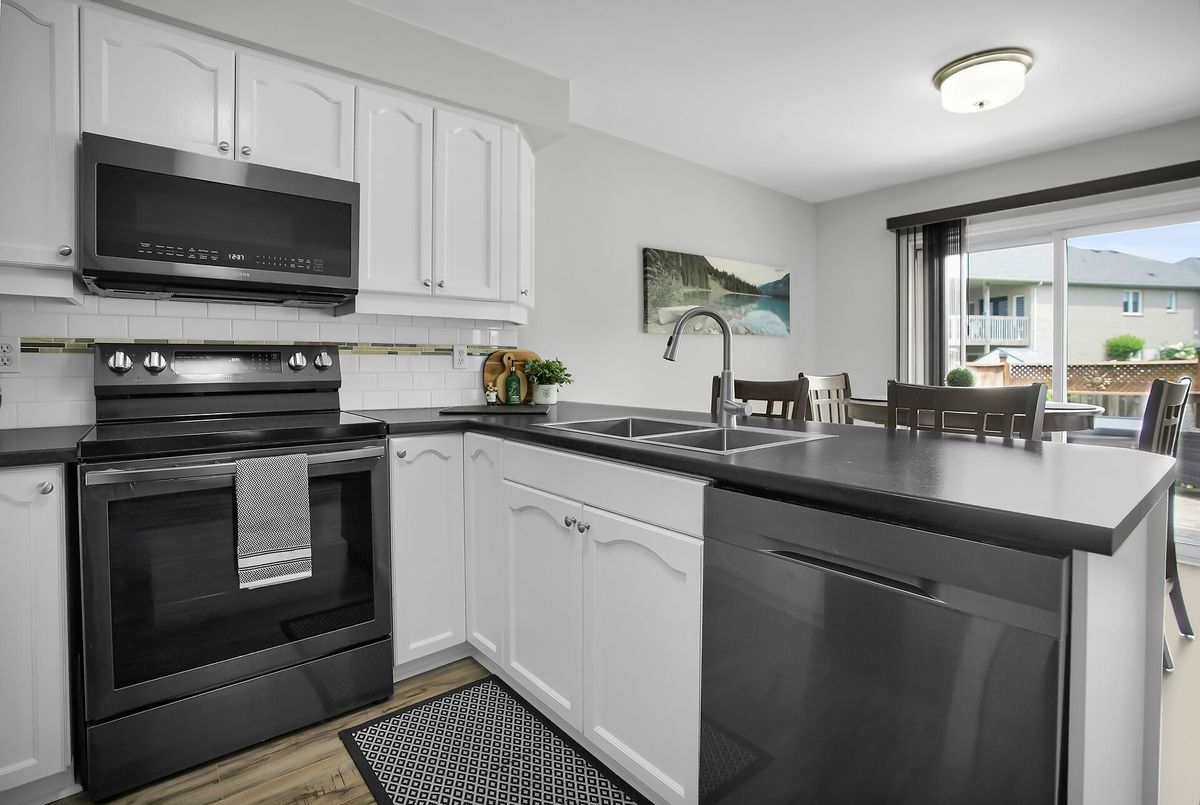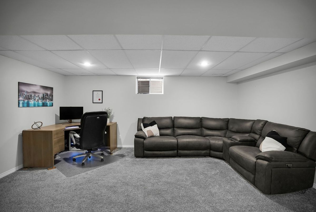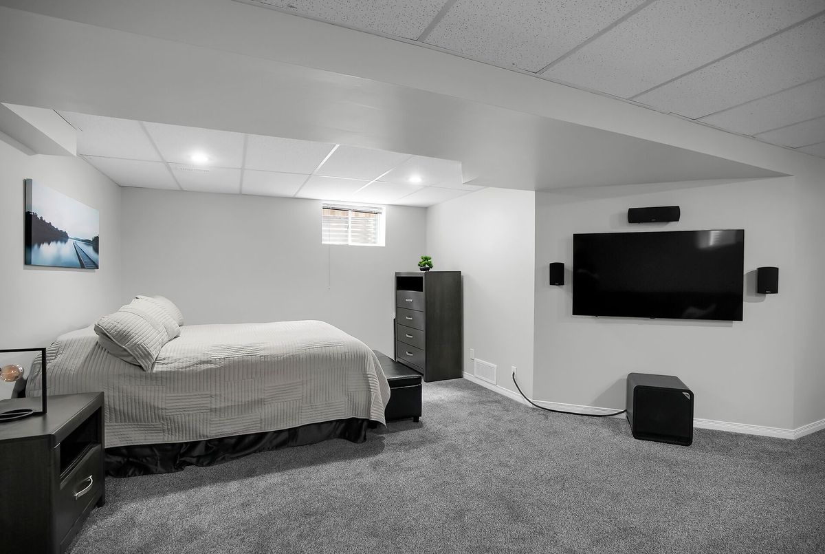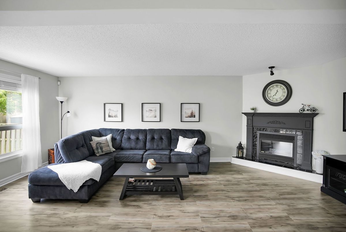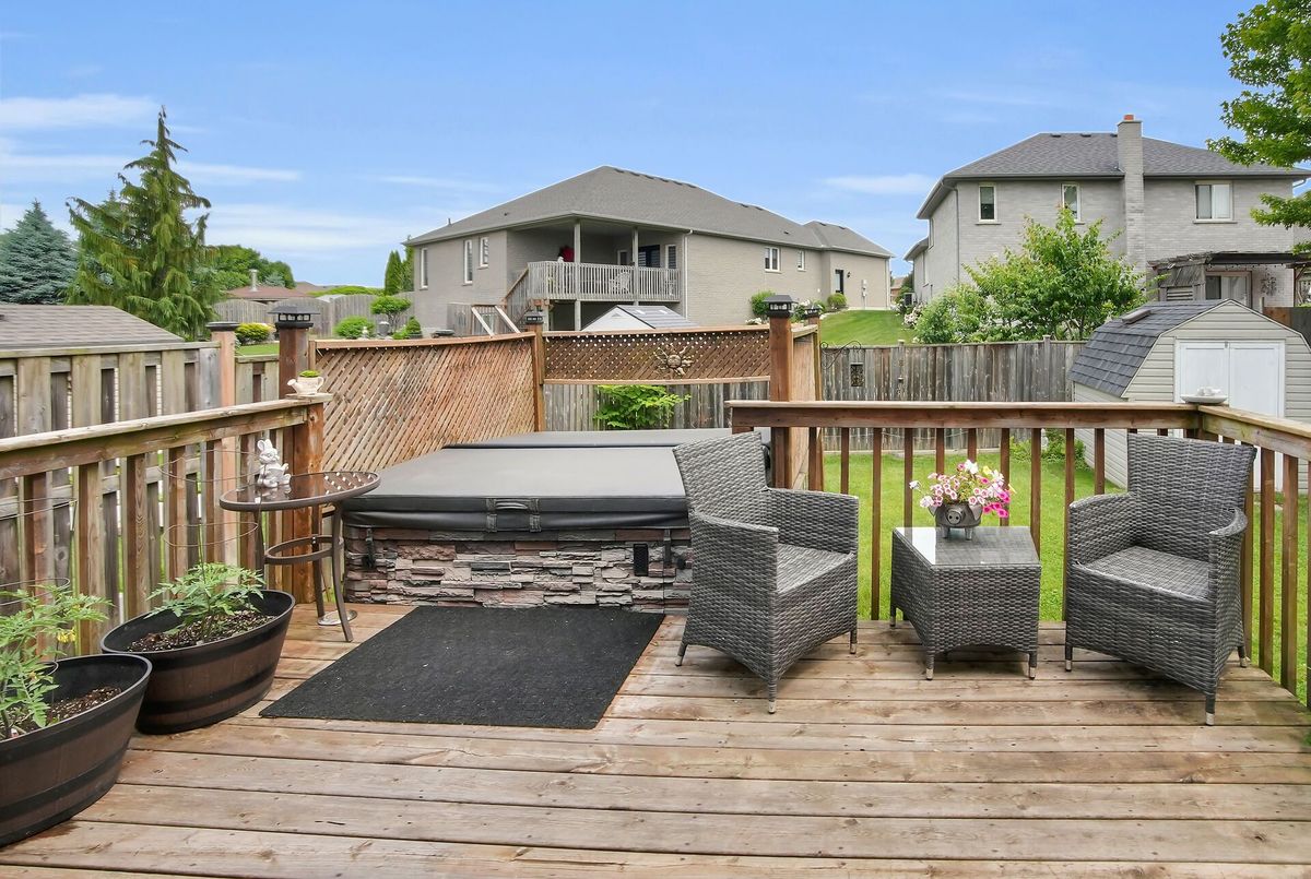 Welcome to this beautifully upgraded 3-bedroom, 2.5-bath home with nearly 1,800 sq ft of finished living space. The upper-level bathrooms feature modern quartz countertops, while the kitchen is complete with sleek black stainless steel appliances. Gather around the cozy gas fireplace, or step outside to enjoy evenings on the deck with a gas BBQ hookup and a 5-person hot tub. The fully finished basement offers brand-new carpet and fresh paint, perfect for extra living space. Additional updates include flooring throughout (2019), central air (2024), and a recently inspected furnace (2024), giving you both style and peace of mind.